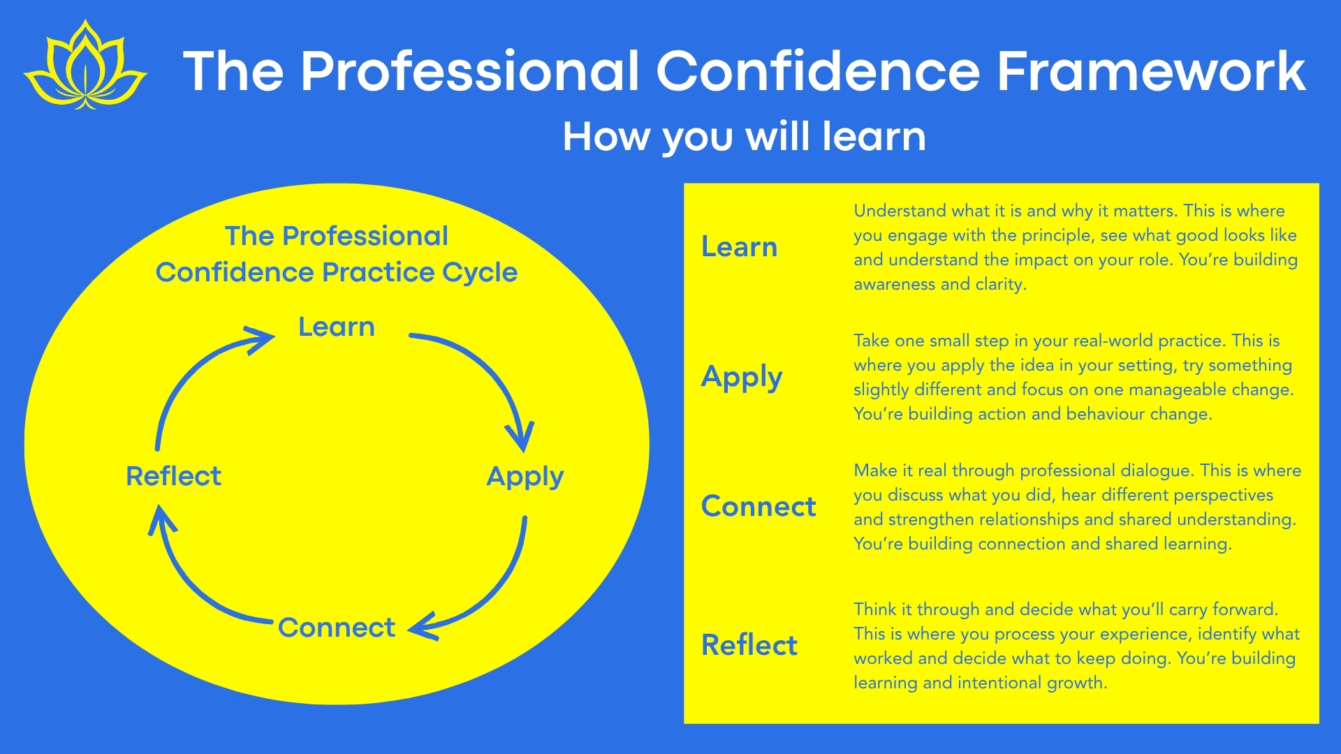 • Completed over 4–6 weeks, don’t rush, Professional Confidence takes time to develop